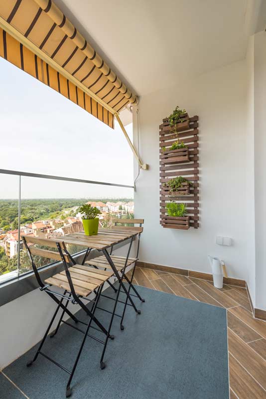 Per quello che riguarda il posizionamento di sedute o di un tavolo, occorre valutare la larghezza del balcone. Qualora lo permettesse un ottima soluzione potrebbe essere una cassapanca in legno all’interno del quale poter riporre cuscini ed altri oggetti per improvvisare un aperitivo godendo della vista della città.