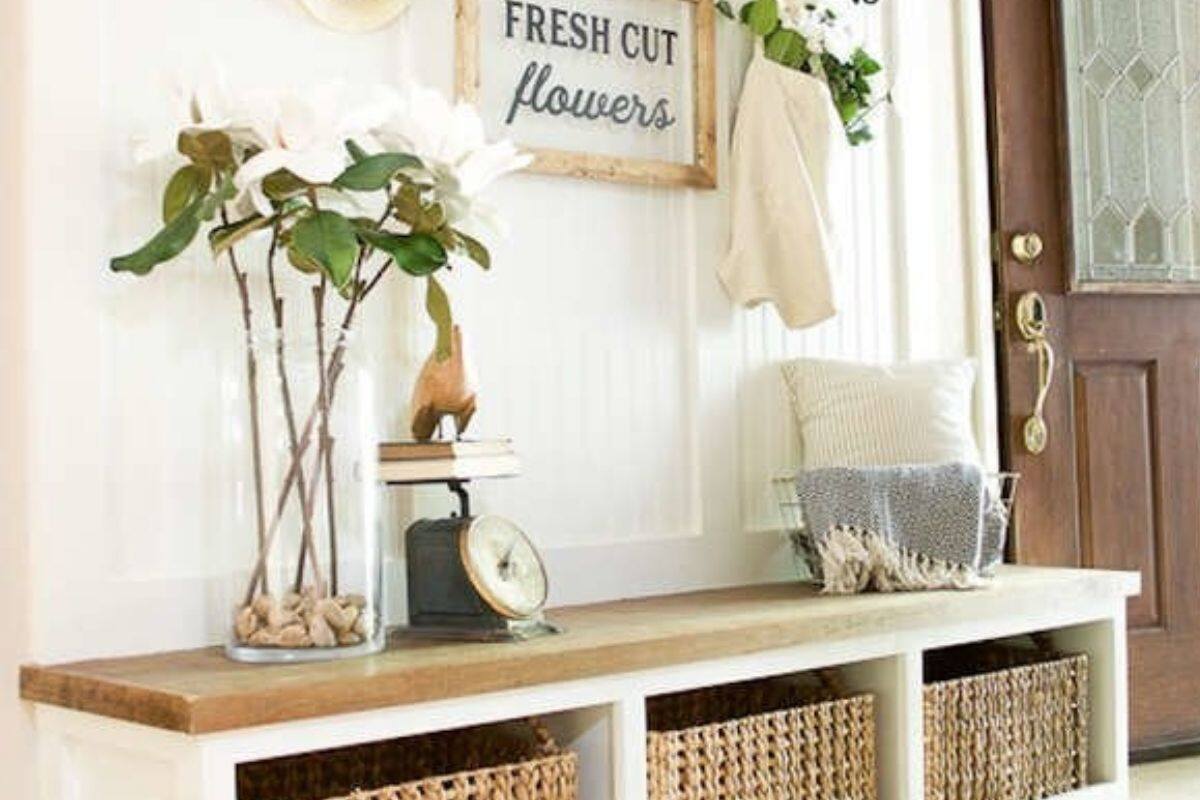 Le idee per conciliare estetica e ordine in un ingresso in stile Shabby Chic sono diverse. Tra queste, spicca la scelta di introdurre cesti in vimini nel sopra citato contesto indoor.