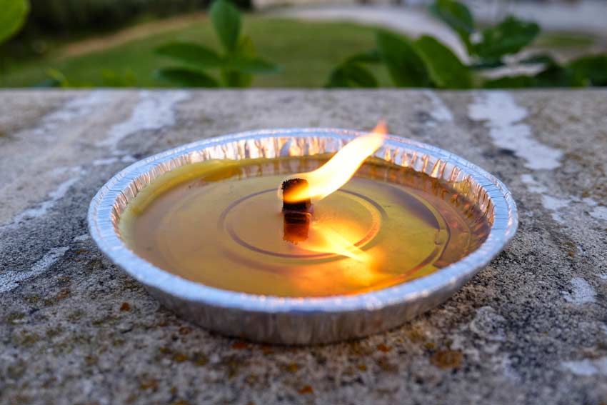 Prima di accendere la candela per la prima volta, tagliate gli stoppini ad almeno 7 millimetri sopra la cera. Dopodiché la tua vostra è pronta per tenere lontane le zanzare.