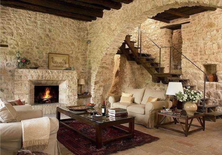 Le pareti e il soffitto a volta in pietra possono creare un’atmosfera calda e avvolgente unica come nessun altro materiale può. Per non correre il rischio di appesantire l’ambiente, vi converrà arredare il soggiorno con mobili chiari e tessuti neutri.
