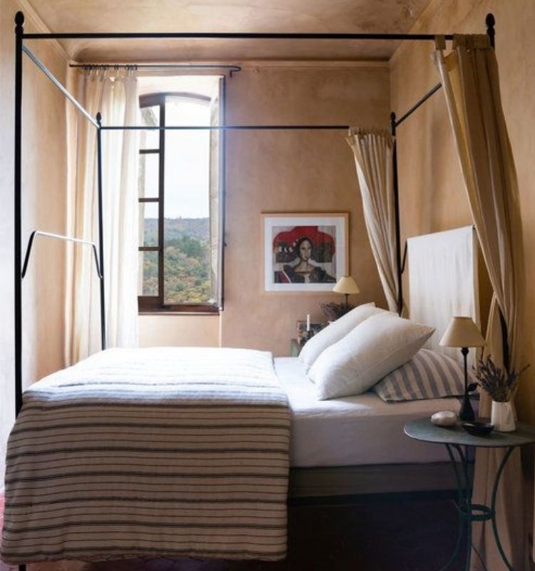 Un must have speciale della casa arredata in stile provenzale? Il letto in ferro battuto, meglio se con struttura a baldacchino.
