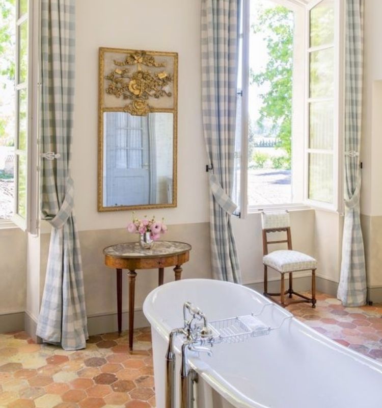 Vediamo ora qualche consiglio dedicato a chi vuole arredare casa in stile provenzale concentrandoci sul bagno. Tra gli elementi immancabili, come potete vedere dall’immagine di qui sotto, rientra la vasca, possibilmente vintage. Le tende, come in tutti gli altri contesti, dovrebbero essere color pastello.