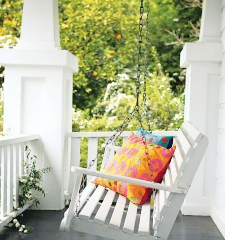 Se c’è sufficiente spazio, quando si arreda il balcone in stile provenzale si può inserire un comodo dondolo, non plus ultra per quanto riguarda i momenti di relax.