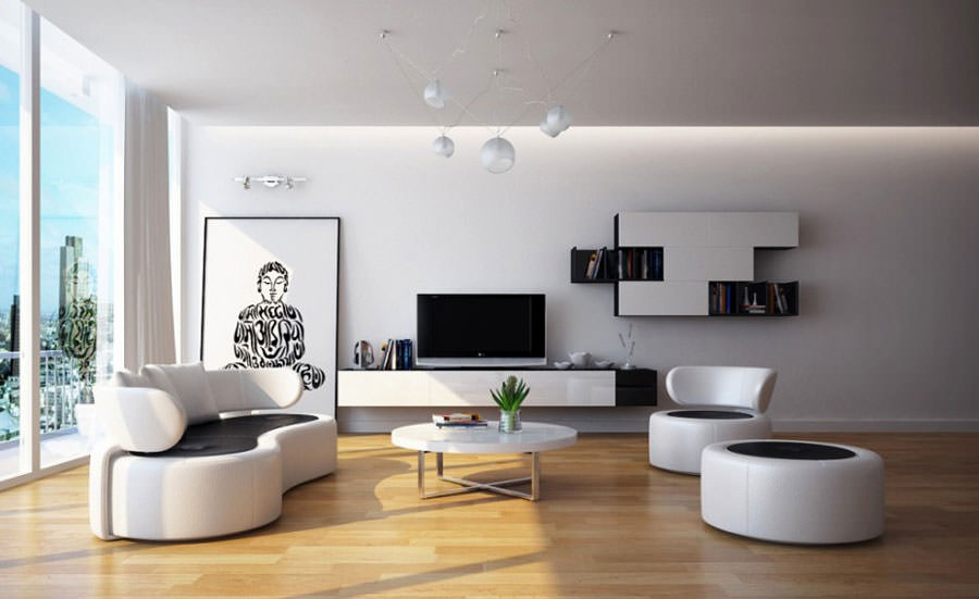 Legno e bianco è un accostamento che interpreta molto bene anche uno stile di arredamento contemporaneo, come si può osservare nell’esempio seguente. Se non amate le soluzioni fredde ed eccessivamente minimaliste, la scelta del parquet verrà in vostro aiuto e aggiungerà calore al soggiorno.