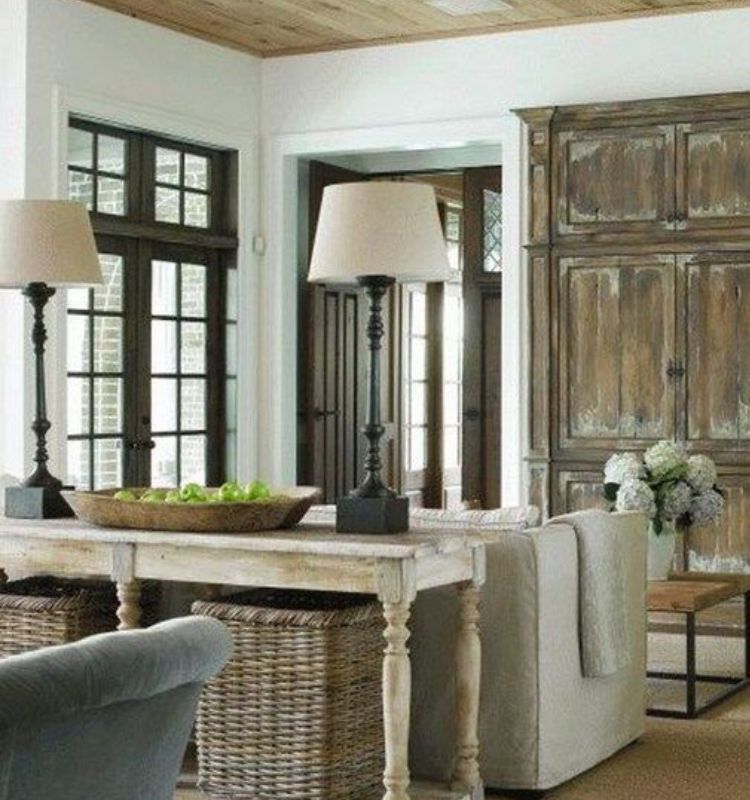 Quando si parla del salotto country provenzale, non si possono non chiamare in causa i mobili dall’aspetto vissuto. Si possono scegliere arredi di piccole dimensioni, ma anche elementi più grandi come l’armadio decapato che potete vedere nella foto qui sotto.