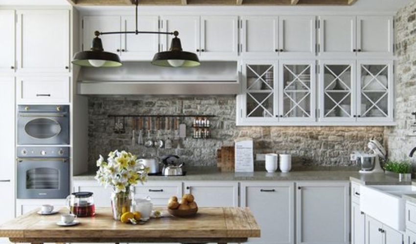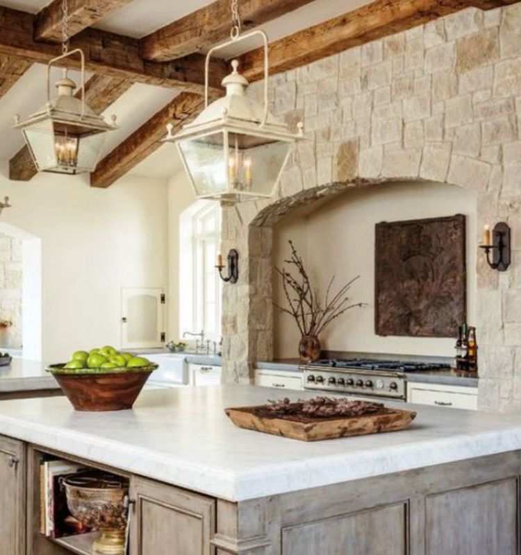 Le lanterne sono un dettaglio estetico fondamentale per l’arredamento provenzale. L’accezione moderna di questo meraviglioso accessorio vede in primo piano la versatilità, come dimostra questo spunto con due fantastiche lanterne che illuminano un’ampia cucina.