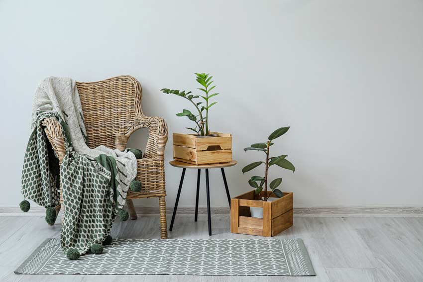 Partiamo da queste due splendide idee per creare un angolo lettura dove poter sedersi in pieno relax. La prima presenta linee minimal e uno stile boho chic con un tocco rustico grazie alle cassette di legno che fungono da porta vasi.