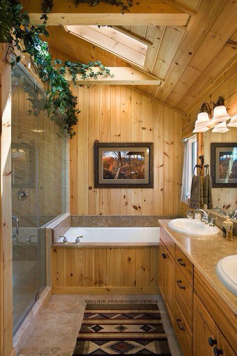 Sembra il bagno rustico di una casa di campagna, tutto di legno, con la grande vasca vintage sotto la bella finestra. Una soluzione d’arredo che risalta per la sua semplicità, per un bagno che abbraccia con calore ed essenzialità.