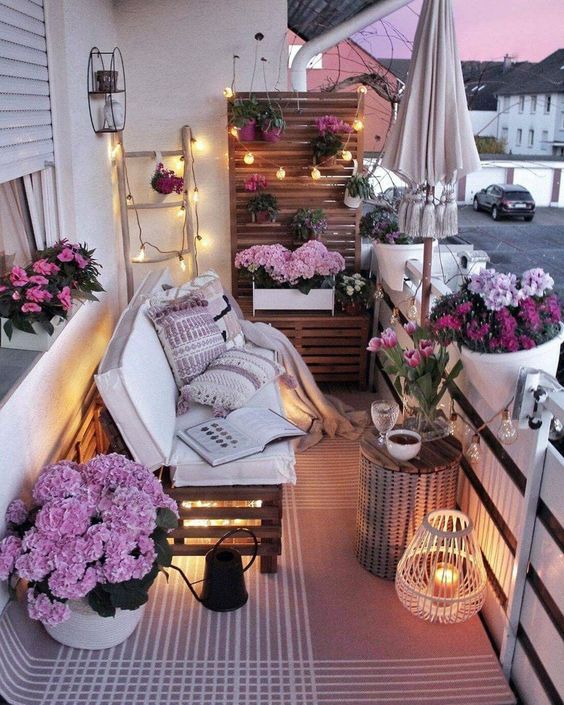 Se avete un balcone piccolo, non rinunciate alla vostra voglia di arredarlo con cura e con eleganza. Riciclate i pallet per realizzare delle sedute comode e originali; servitevi delle piante più belle per ornare tutto intorno, mettete filari di luci, morbidi cuscini, tappeti “da hoc”. Create la vostra atmosfera dei sogni e vivete lo spazio esterno in maniera ottimale, anche se è di modeste dimensioni.