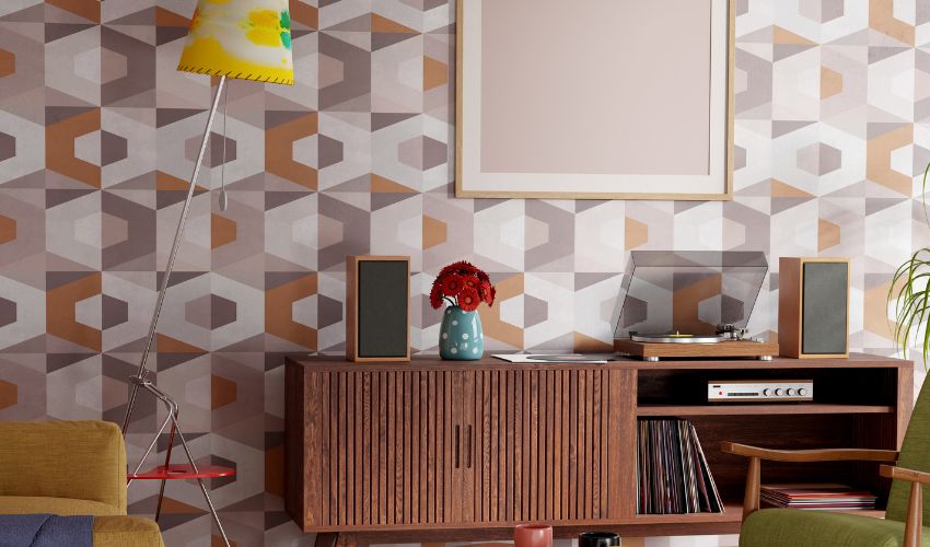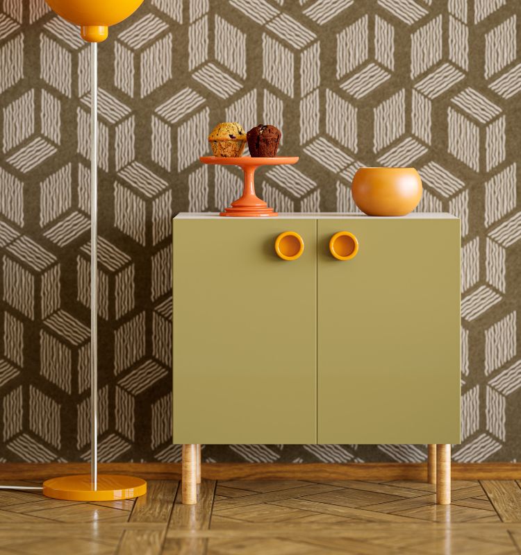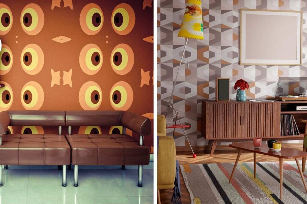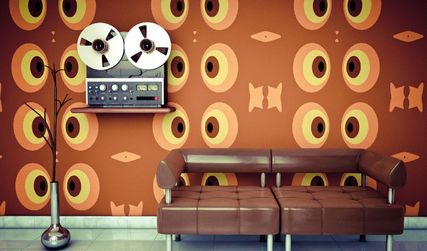 In un soggiorno in stile seventies non può mancare la carta da parati. Infatti, le pareti si distinguono per i pattern, motivi geometrici o trame ad effetto optical. Tuttavia, molto apprezzati sono anche i motivi floreali e fantasie particolari in grado di stupire per la loro originalità. Il consiglio è di applicare la carta da parati su una sola parete, e tinteggiare le altre con i colori forti che si richiamano a quelli dei disegni della carta, per evitare di appesantire l’ambiente.