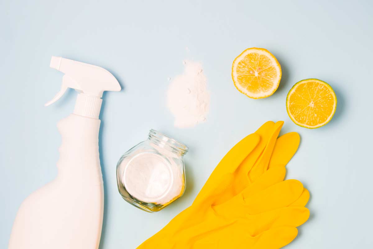 Se il calcare persiste ancora, preparate un composto di bicarbonato e limone, da strofinare con una spugna sui vetri del box doccia.