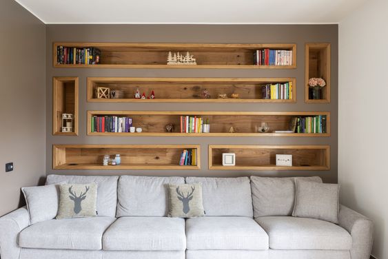 Un’altra idea può essere quella di inserire alla parete delle decorazioni in legno da appendere. Sì, avete letto bene! Si tratta di una soluzione intermedia, che può essere fatta nel momento in cui non avete ancora deciso se volete un’intera parete fatta di legno o se volete solo delle decorazioni, come quelle negli esempi di seguito.