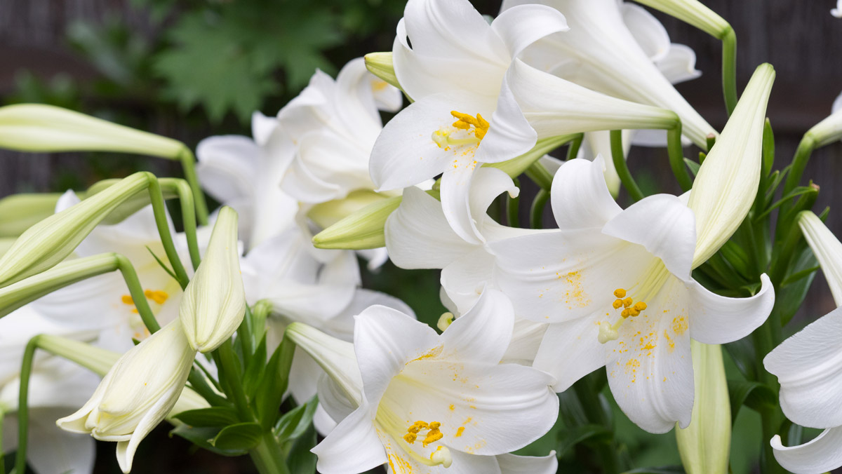 Tra le varie colorazioni del giglio troviamo anche il bianco. Si tratta di una delle varietà più affascinanti ed esteticamente valide: i fiori bianchi sono larghi e a forma di tromba, con delle antere giallognole. Le fioriture solitamente si hanno proprio in questo periodo, da giugno a luglio. Profumo davvero molto interessante.