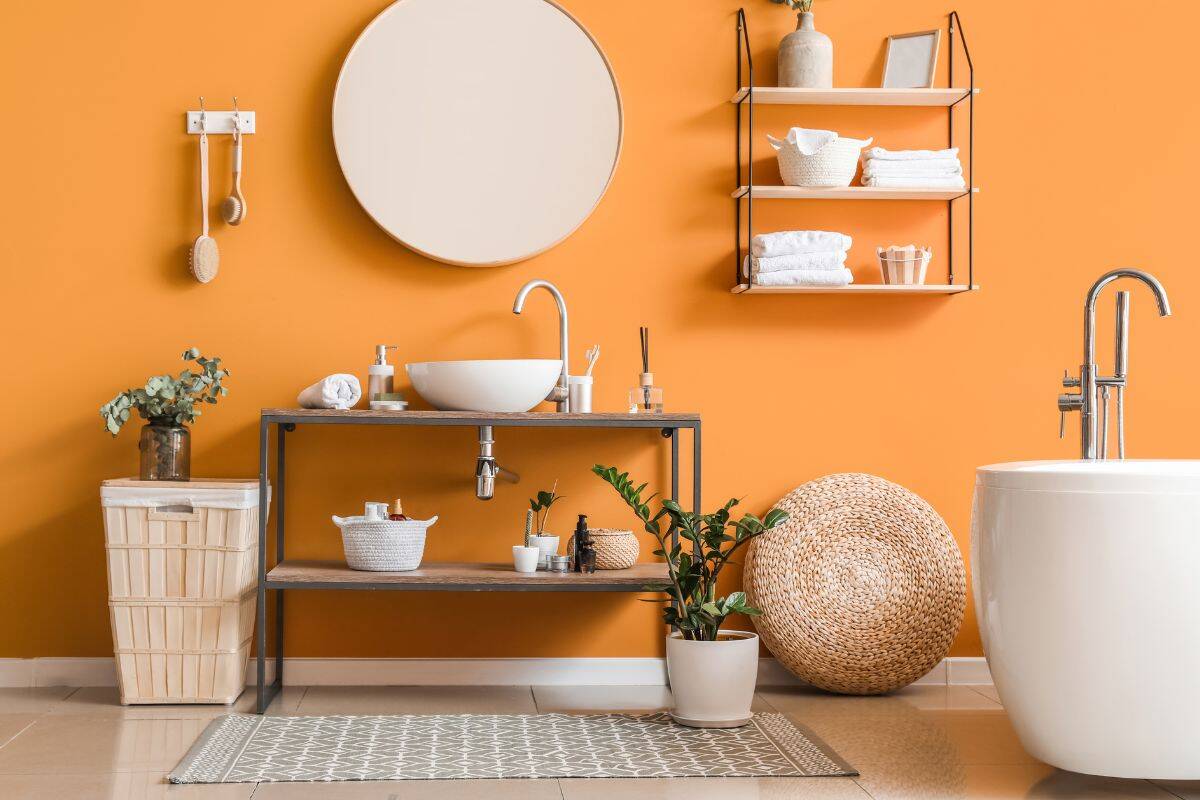 Arancione: la scelta perfetta per un bagno minimal
