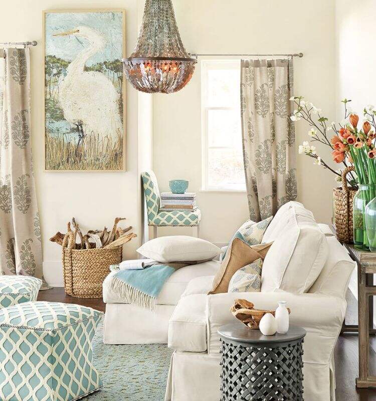 In un salotto dove prevalgono le tinte pastello, i materiali naturali, le piante, la soluzione ideale sarà la scelta di due pouf identici in cotone chiaro che aggiungano armonia all’insieme. Saranno complementi d’arredo decorativi, ma utili anche come punti di appoggio o come sedute.