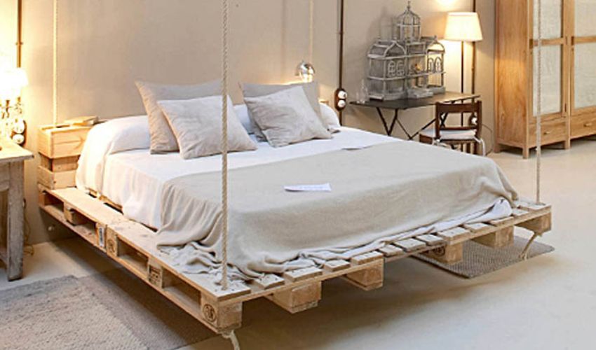 Ecco un’idea semplice, ma di grande impatto visivo. Qui il materasso è adagiato sopra una struttura di pallet aperta, che consente di ottenere dei pratici scomparti portaoggetti. Potrete sfruttarli, lasciarli vuoti o sistemare alcune catene luminose per creare un’atmosfera notturna suggestiva.