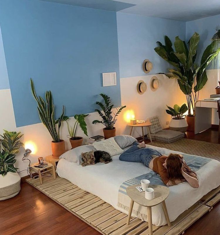 Se preferite una versione ancora più moderna del tradizionale letto giapponese, potreste dipingere la struttura in pallet di una tinta accesa. Giocate con i colori per dare ancora più personalità alla camera! Abbinate complementi d’arredo di due o tre cromie diverse, senza azzardare, però, accostamenti disarmonici.