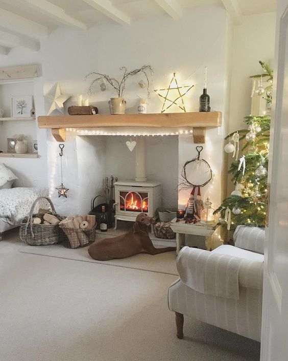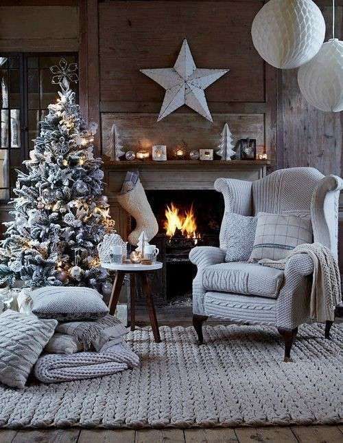 Il tipico soggiorno shabby chic natalizio di foggia nordica, che punta sull’essenzialità senza mai rinunciare alla sua dose di incredibile bellezza.