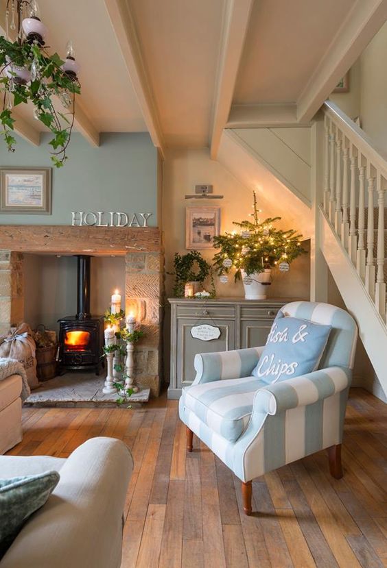 Il soggiorno natalizio shabby riporta indietro le lancette dell’orologio e regala un’intimità davvero calorosa. Ecco un bell’esempio di arredamento shabby che si mischia mirabilmente allo stile tipico del cottage e della campagna. Un mix di ispirazioni tutte da copiare.