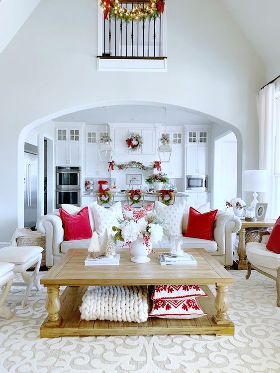 Bianco e rosso: il binomio perfetto per il più allegro dei Natali. Questo soggiorno shabby richiama accenti tradizionali ma, al tempo stesso, si veste di ispirazioni semplici, tipici di una casa giovane e versatile.