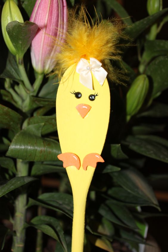 Basta poco per dare vita ad un animaletto che è uno dei tanti simboli della Pasqua. Con un mestolo di legno, magari inutilizzato, si realizza un pulcino simpatico ed originale. Dipingete di giallo il cucchiaio e poi incollateci sopra occhietti neri (o dipingeteli, se vi è più comodo);  con un pezzettino di cartoncino rosso o di feltro, realizzate il becco.