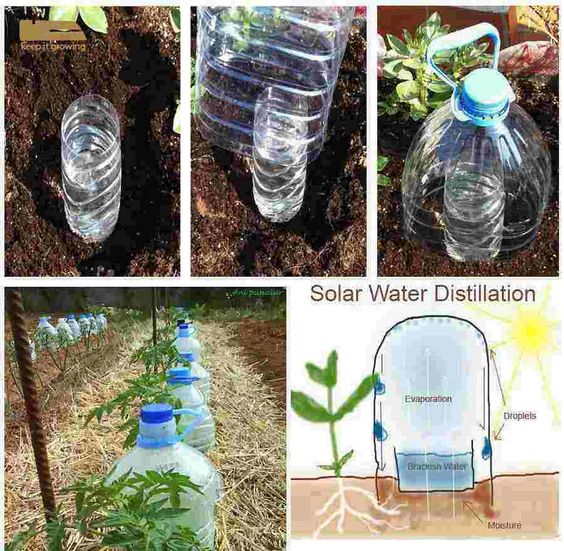 Il sole fa evaporare l’acqua che sta dentro il contenitore più piccolo e questa diventa condensa sulle pareti del contenitore più grande, cadendo poi dentro il terreno. In tale modo, l’acqua non va dispersa e il terreno risulta ben irrigato con acqua divenuta distillata e dosata nella giusta misura, costantemente.