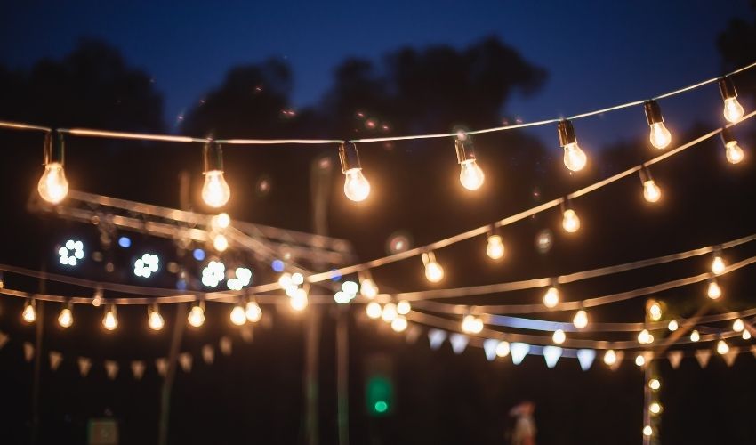 - Zona relax illuminata: combina lanterne e luci soffuse per creare un’area conversazione intima e accogliente.