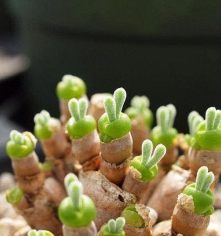 Un’altra specie affascinante è la Monilaria obconica, soprannominata pianta dei coniglietti per la forma dei suoi germogli, che richiede minime cure. Posizionata in un ambiente luminoso, questa pianta continua a deliziare con la sua semplicità e il suo charme.