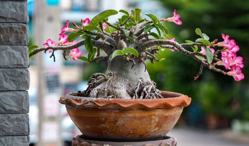 Adenium obesum: Anche noto come rosa del deserto, ha un tronco grosso e fiori che possono variare dal bianco al rosa, offrendo un contrasto visivo straordinario.