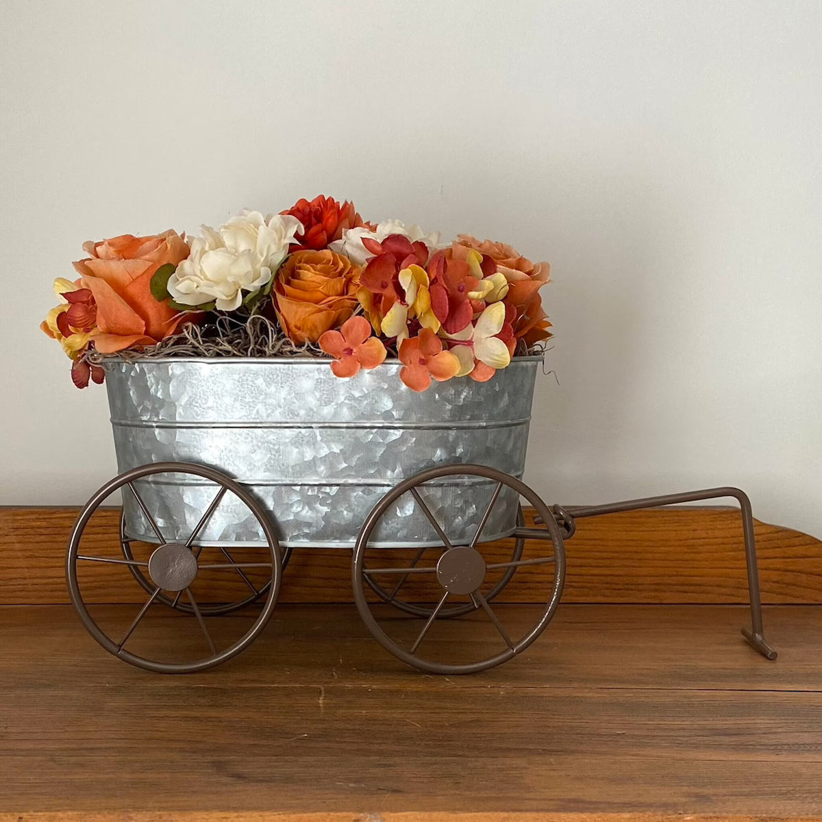 Utilizza fiori di seta per aggiungere un elemento di eleganza duratura al tuo centrotavola. Inseriscili in piccole gabbiette di metallo o piccoli carretti per creare un punto focale delicato e romantico.