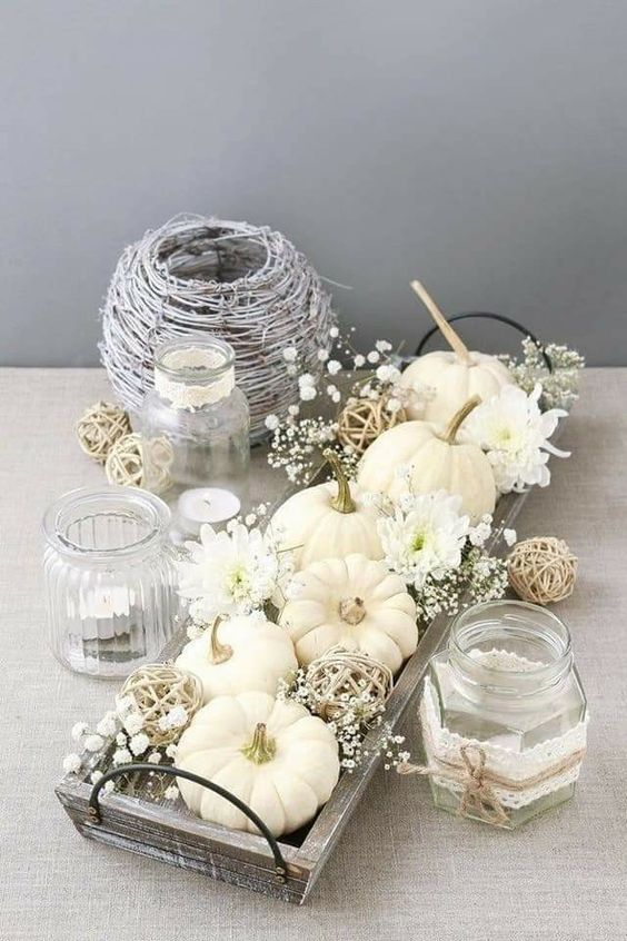 Scopri come trasformare le zucche bianche in pezzi centrali di una decorazione autunnale raffinata e accogliente.