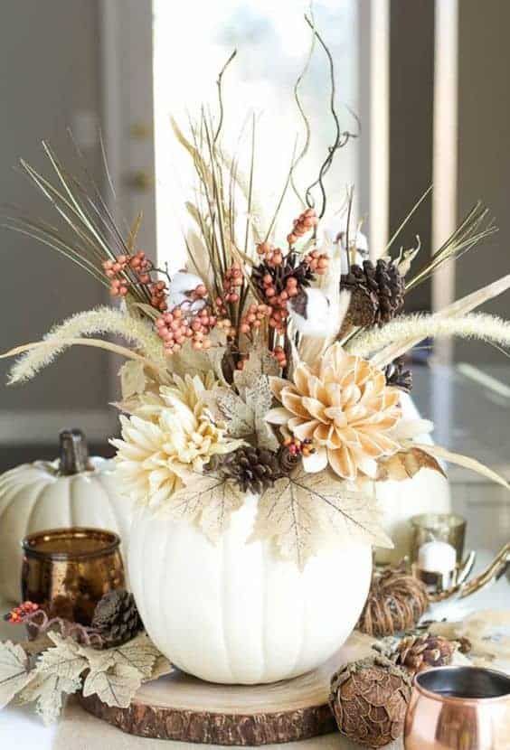 Un’altra ottima idea per utilizzare le zucche bianche è quella di trasformarle in un centrotavola decorativo. Un centrotavola ben fatto può diventare il punto focale della tua tavola durante le cene autunnali o i pranzi in famiglia. La zucca bianca, con il suo aspetto pulito ed elegante, si presta perfettamente a questa funzione.