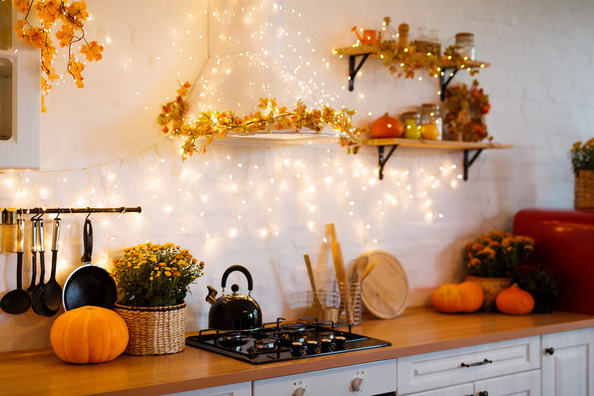 Per decorare l’esterno della tua abitazione, disponi le zucche lungo le scale o vicino all’ingresso. Queste, con la loro avvenenza naturale, segnano il cammino e accolgono gli ospiti in modo caloroso e suggestivo. In cucina, dissemina le zucche sui piani d’appoggio e illuminale con piccole lucine dorate per creare un mood festivo senza pari che accompagnerà tutta la stagione.