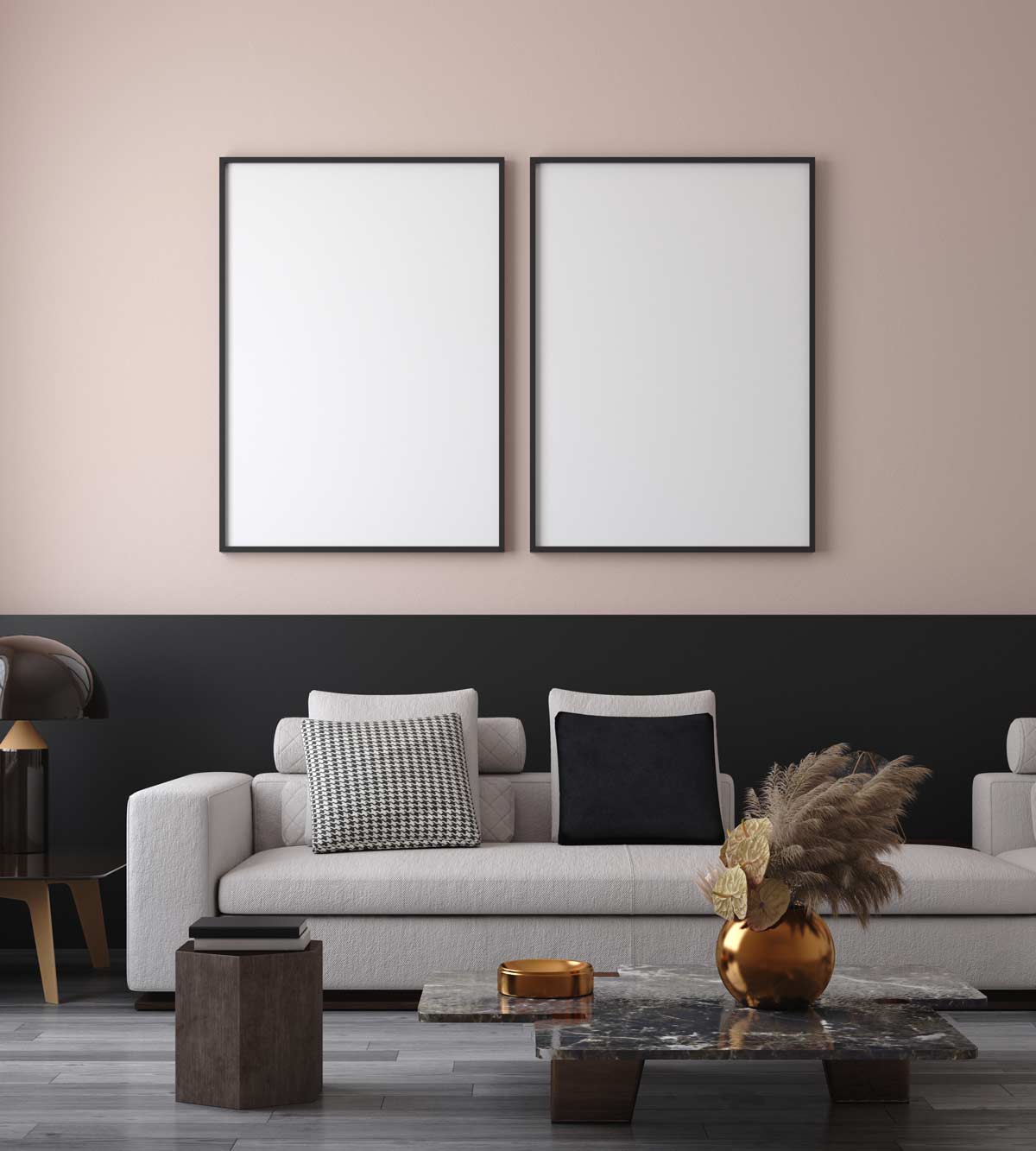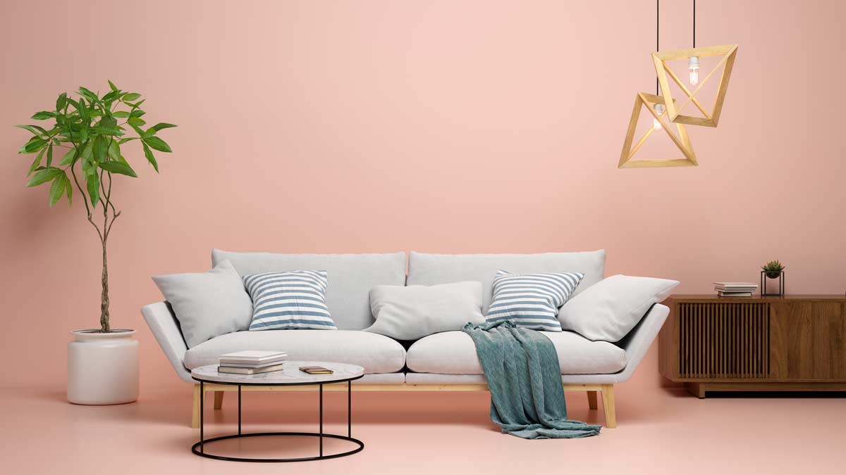 Soggiorno con pareti rosa cipria: equilibrio tra modernità e calore