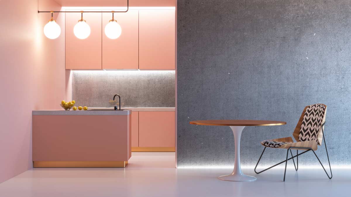 Se vuoi una cucina elegante ma fuori dagli schemi, il rosa cipria è una scelta interessante. Questa tonalità può essere utilizzata per le pareti, ma anche per gli arredi, creando un effetto armonioso e accogliente.