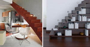 Lo spazio sotto le scale può diventare un luogo da arredare come più vi aggrada. Non lasciatevi mai condizionare dalla presenza di questa struttura architettonica…